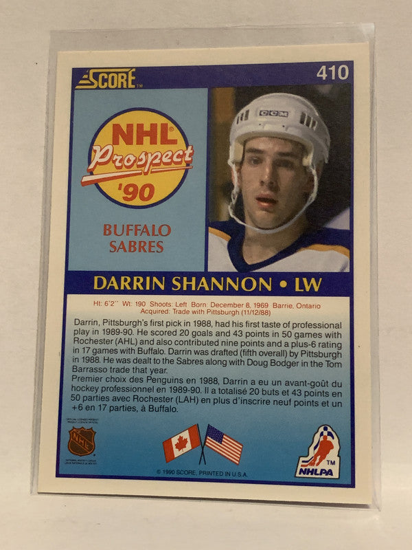 #410 Darrin Shannon Rookie Buffalo Sabres 1990-91 Score Hockey Card NHL