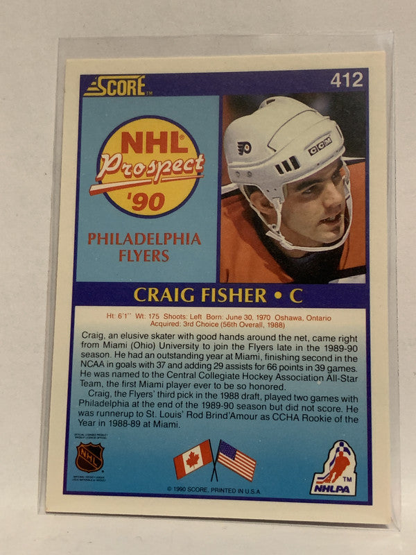 #412 Craig Fisher Rookie Philadelphia Flyers 1990-91 Score Hockey Card NHL