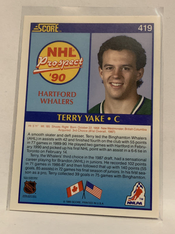 #419 Terry Yake Rookie Hartford Whalers 1990-91 Score Hockey Card NHL