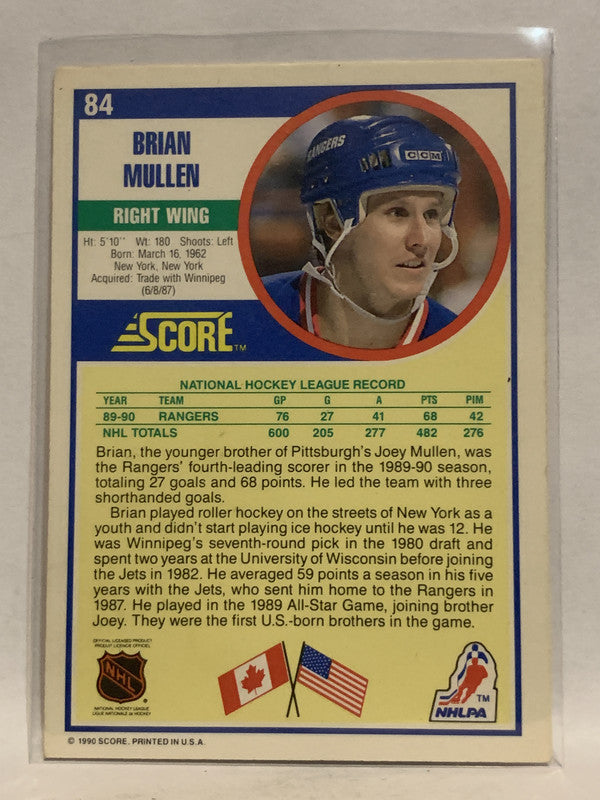 #84 Brian Mullen New York Rangers 1990-91 Score Hockey Card