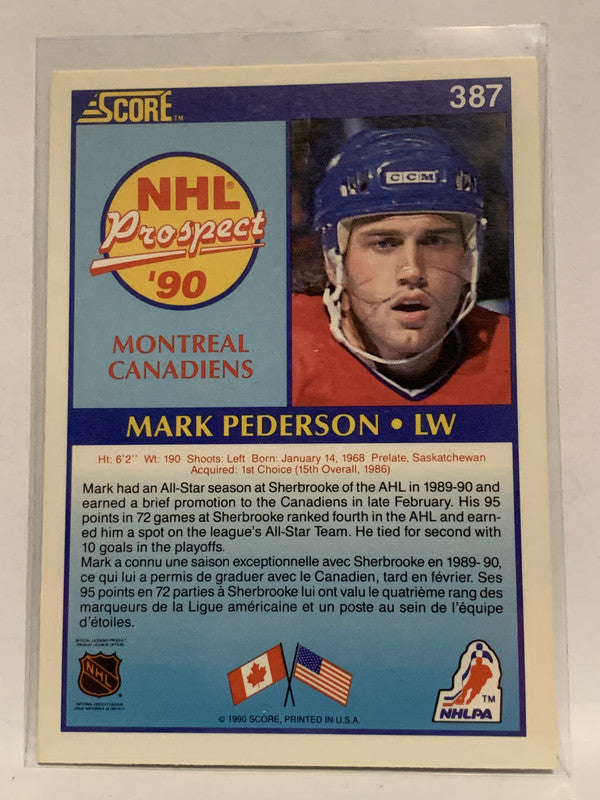#387 Mark Pederson Montreal Canadiens 1990-91 Score Hockey Card NHL