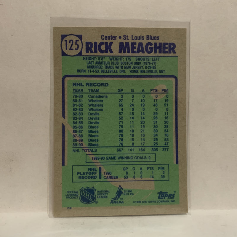 #125 Rick Meagher St Louis Blues 1990-91 Topps Hockey Card JZ1