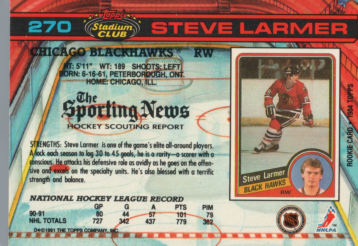 #270 Steve Larmer Chicago Blackhawks 1990-91 Topps Stadium Club Hockey Card OO