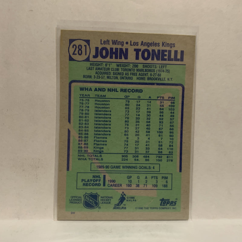 #281 John Tonelli Los Angeles Kings 1990-91 Topps Hockey Card JZ