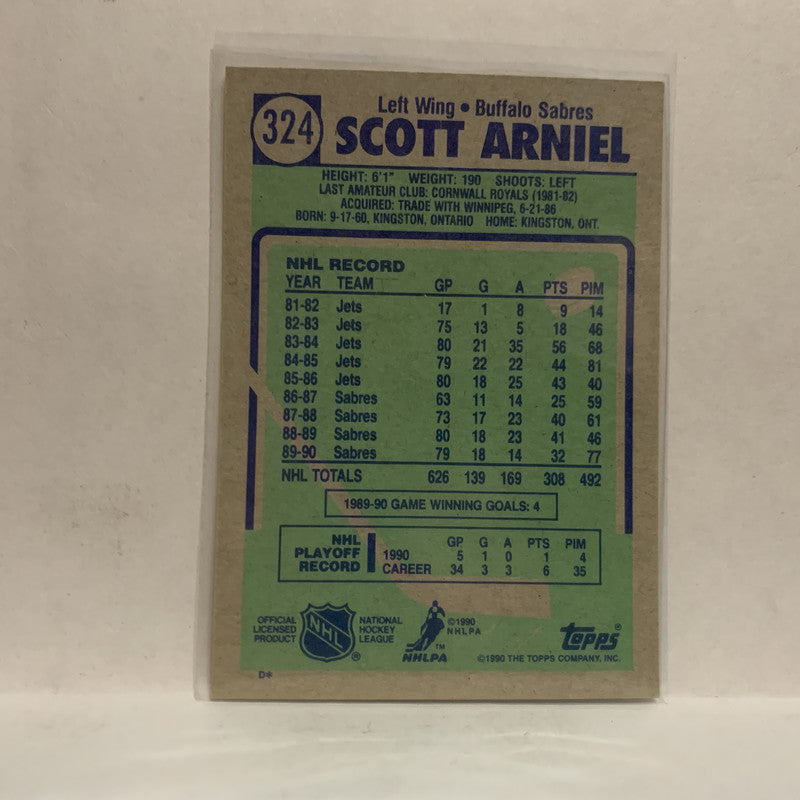 #324 Scott Arniel Buffalo Sabres 1990-91 Topps Hockey Card JZ