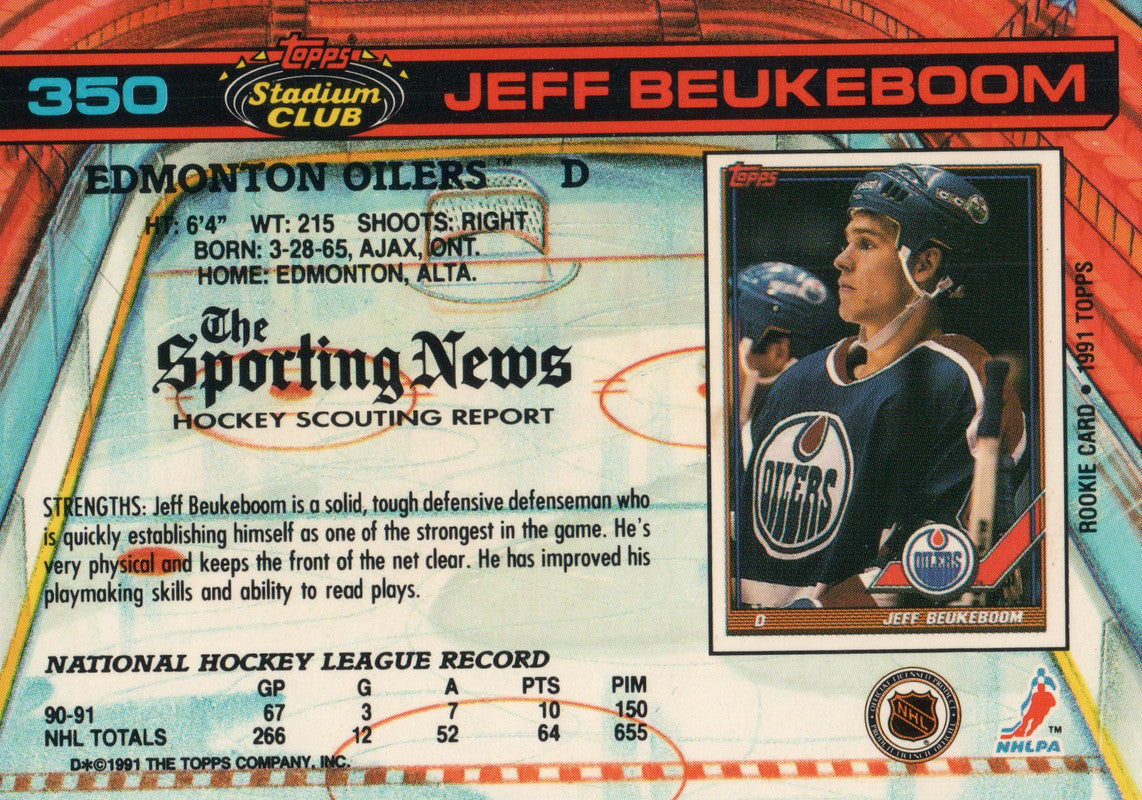 #350 Jeff Beukeboom Edmonton Oilers 1990-91 Topps Stadium Club Hockey Card OQ
