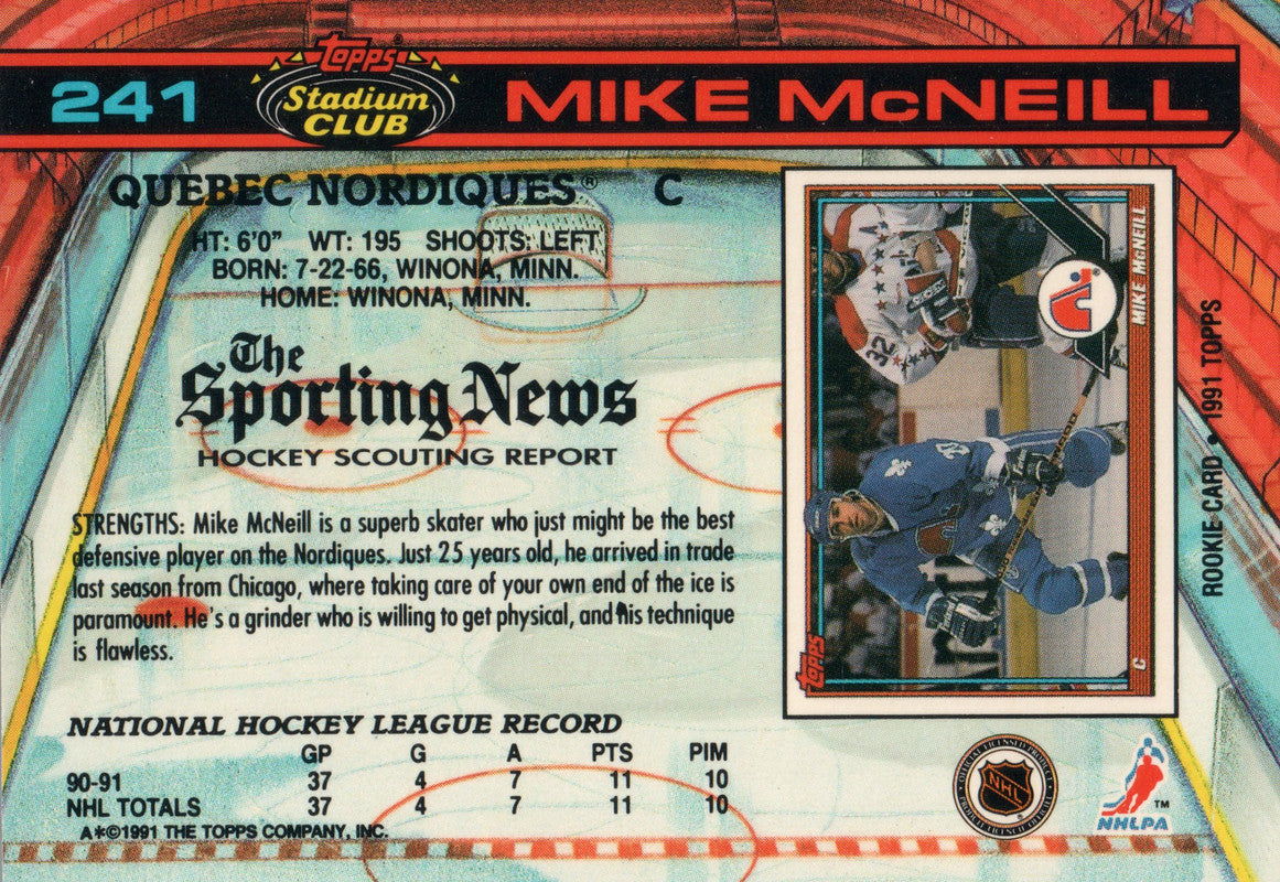#241 Mike McNeill Quebec Nordiques 1990-91 Topps Stadium Club Hockey Card OT