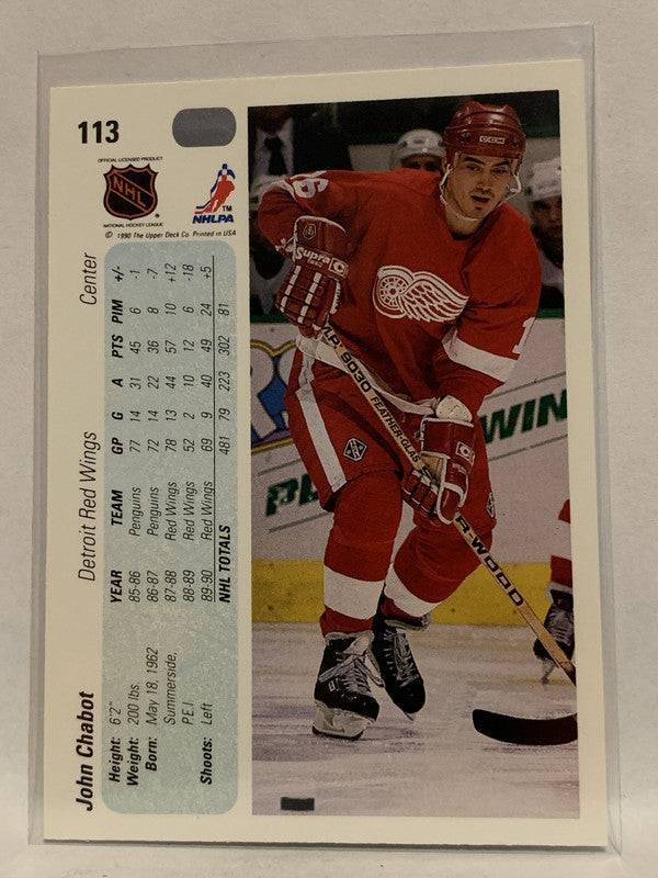 #113 John Chabot Detroit Red Wings 1990-91 Upper Deck Hockey Card NHL