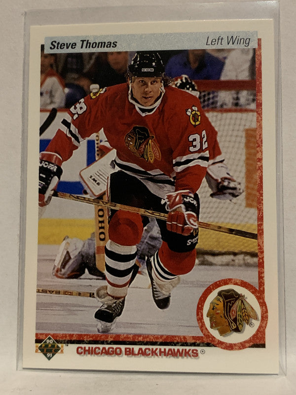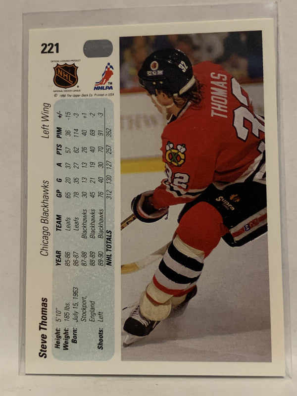 #221 Steve Thomas Chicago Blackhawks 1990-91 Upper Deck Hockey Card NHL