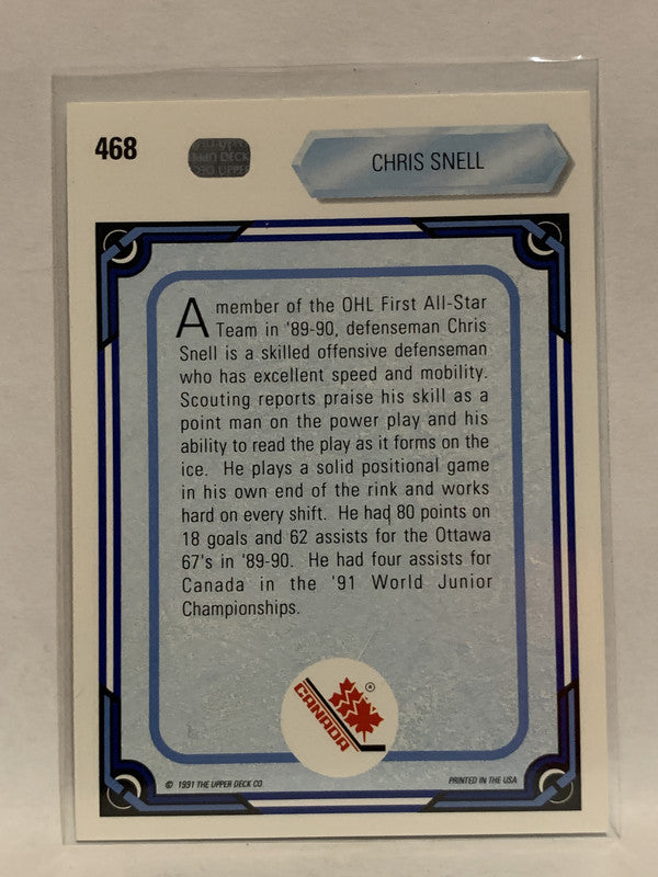 #468 Chris Snell World Junior Champions 1990-91 Upper Deck Hockey Card NHL