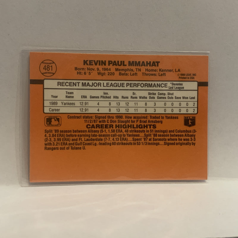 #481 Kevin Paul Mmahat New York Yankees 1990 Donruss Baseball Card HV