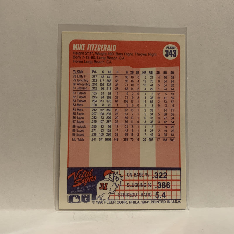 #343 Mike Fitzgerald Montreal Expos 1990 Fleer Baseball Card IL