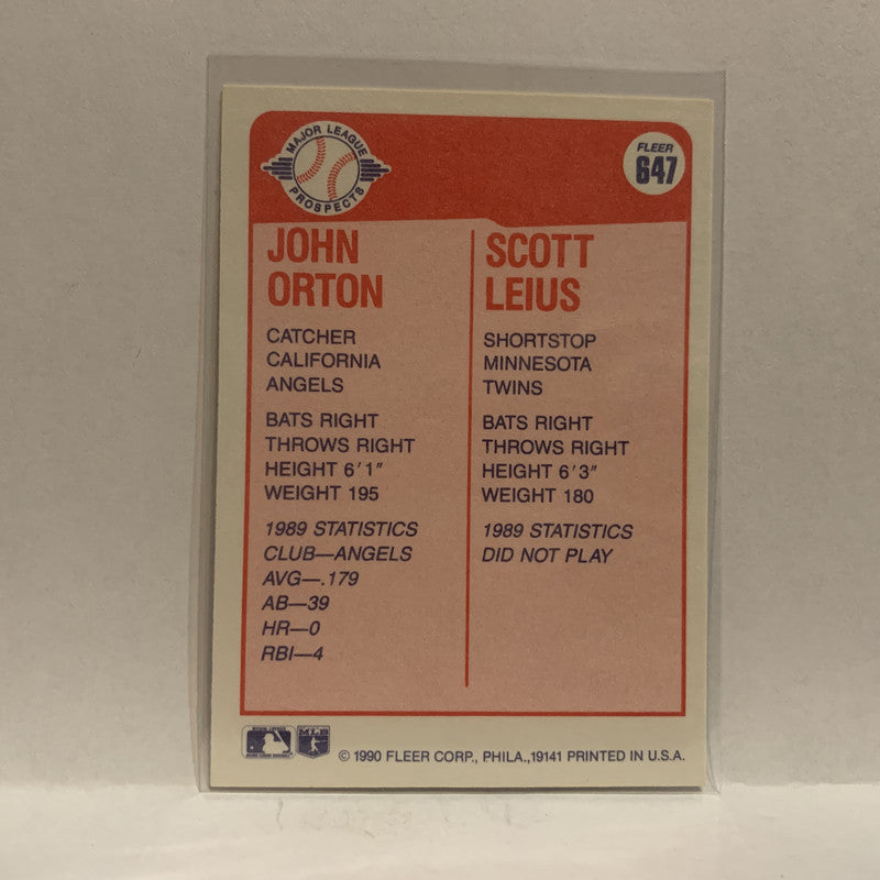 #647 John Orton Scott Leius Prospects 1990 Fleer Baseball Card IM