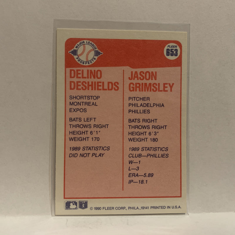 #653 Delino Deshields Jason Grimsley Prospects 1990 Fleer Baseball Card IM