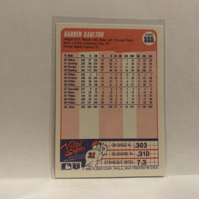 #555 Darren Daulton Philadelphia Phillies 1990 Fleer Baseball Card IM