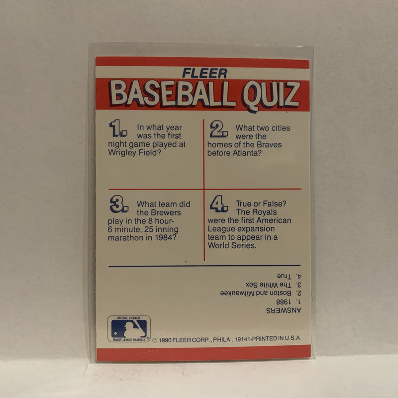 Team Quiz Major League 1990 Fleer Baseball Card IX