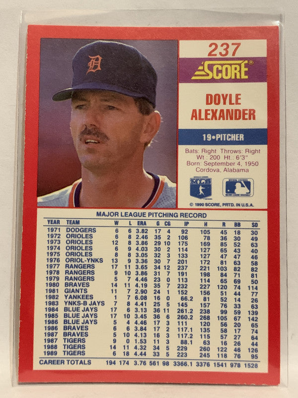 #237 Doyle Alexander Detroit Tigers 1990 Score Baseball Card