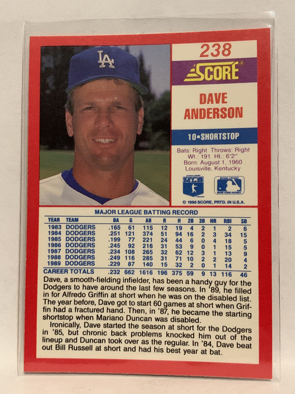 #238 Dave Anderson Los Angeles Dodgers 1990 Score Baseball Card