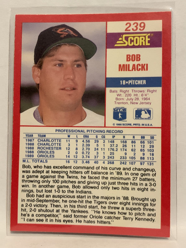 #239 Bob Milacki Baltimore Orioles 1990 Score Baseball Card