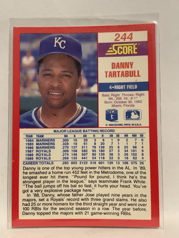 #244 Danny Tartabull Kansas City Royals 1990 Score Baseball Card