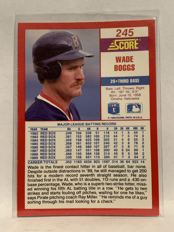 #245 Wade Boggs Boston Red Sox 1990 Score Baseball Card