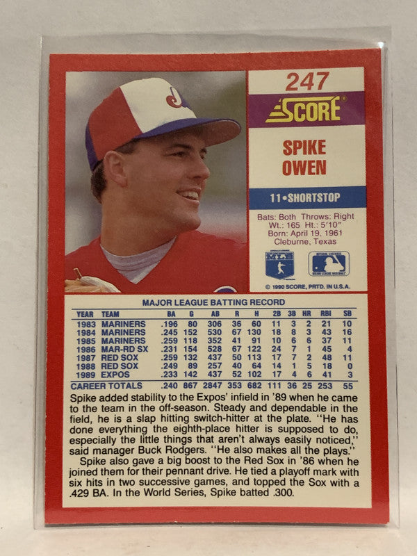 #247 Spike Owen Montreal Expos 1990 Score Baseball Card
