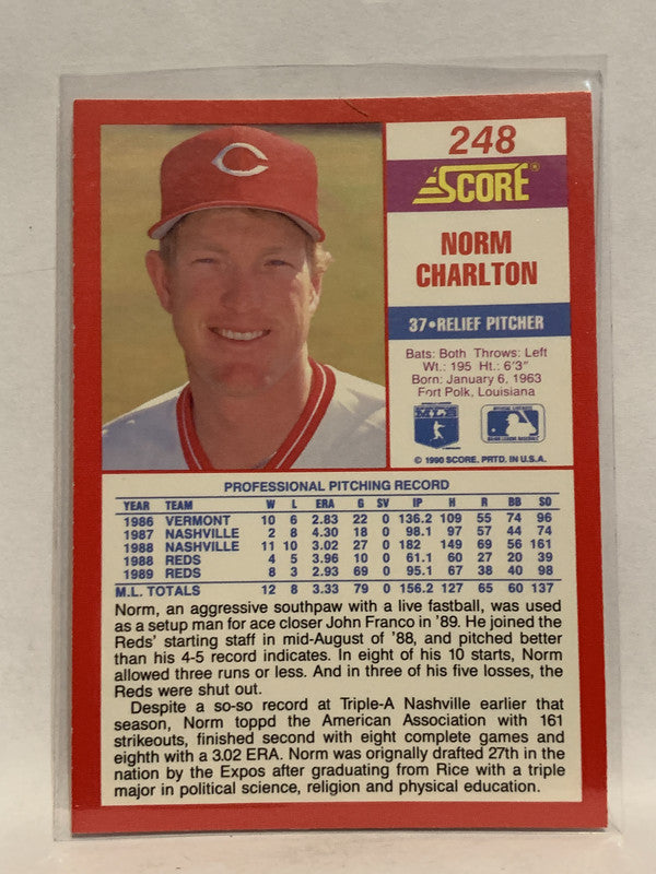 #248 Norm Charlton Cincinnati Reds 1990 Score Baseball Card