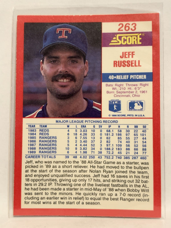 #263 Jeff Russell Texas Rangers 1990 Score Baseball Card
