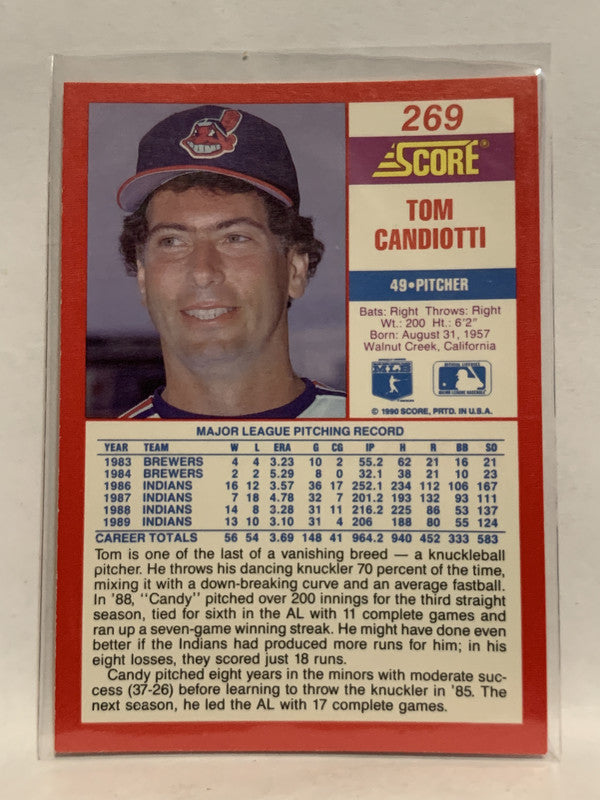 #269 Tom Candiotti Cleveland Indians 1990 Score Baseball Card