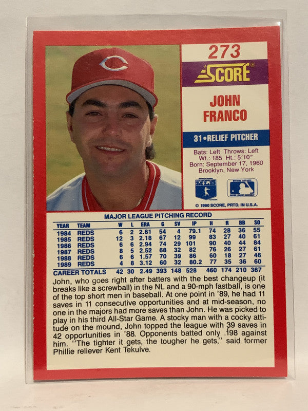 #273 John Franco Cincinnati Reds 1990 Score Baseball Card