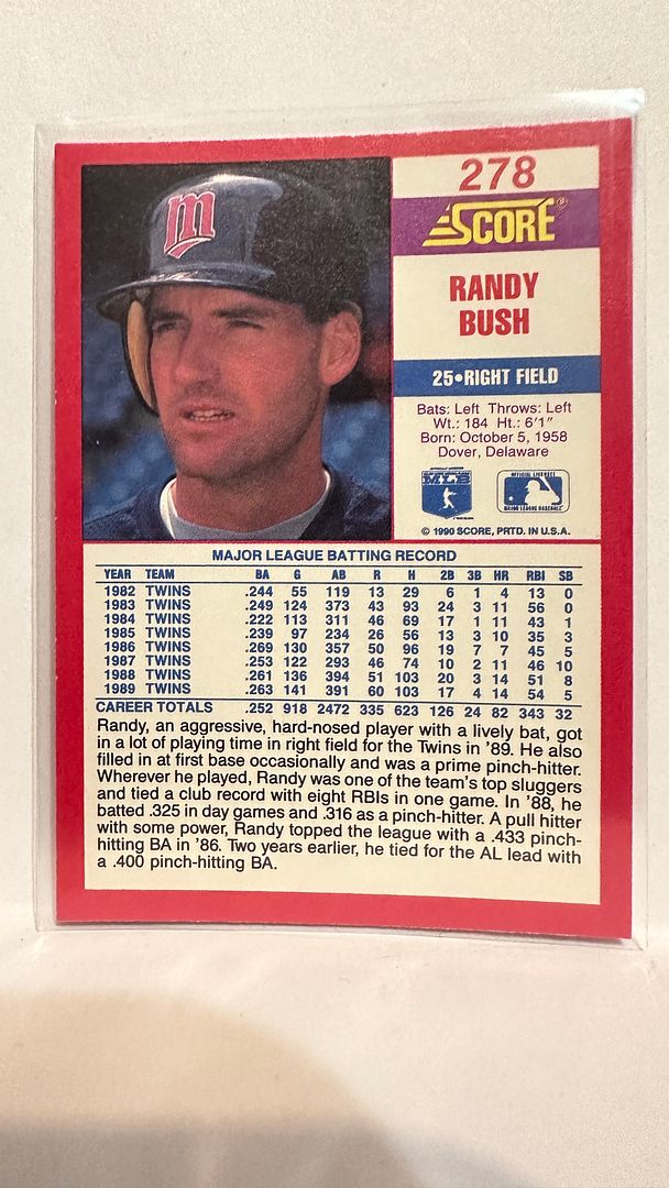 #278 Randy Bush Minnesota twins 1990 Score Baseball Card