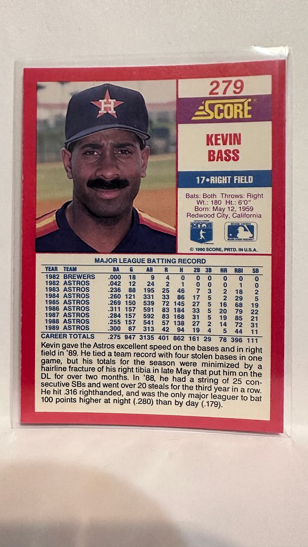 #279 Kevin Bass Houston Astros 1990 Score Baseball Card