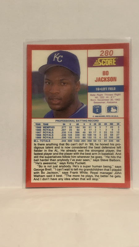 #280 Bo Jackson Kansas City Royals 1990 Score Baseball Card