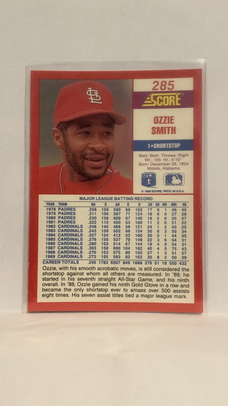 #285 Ozzie Smith St Louis Cardinals 1990 Score Baseball Card