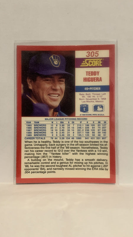 #305 Teddy Higuera Milwaukee Brewers 1990 Score Baseball Card