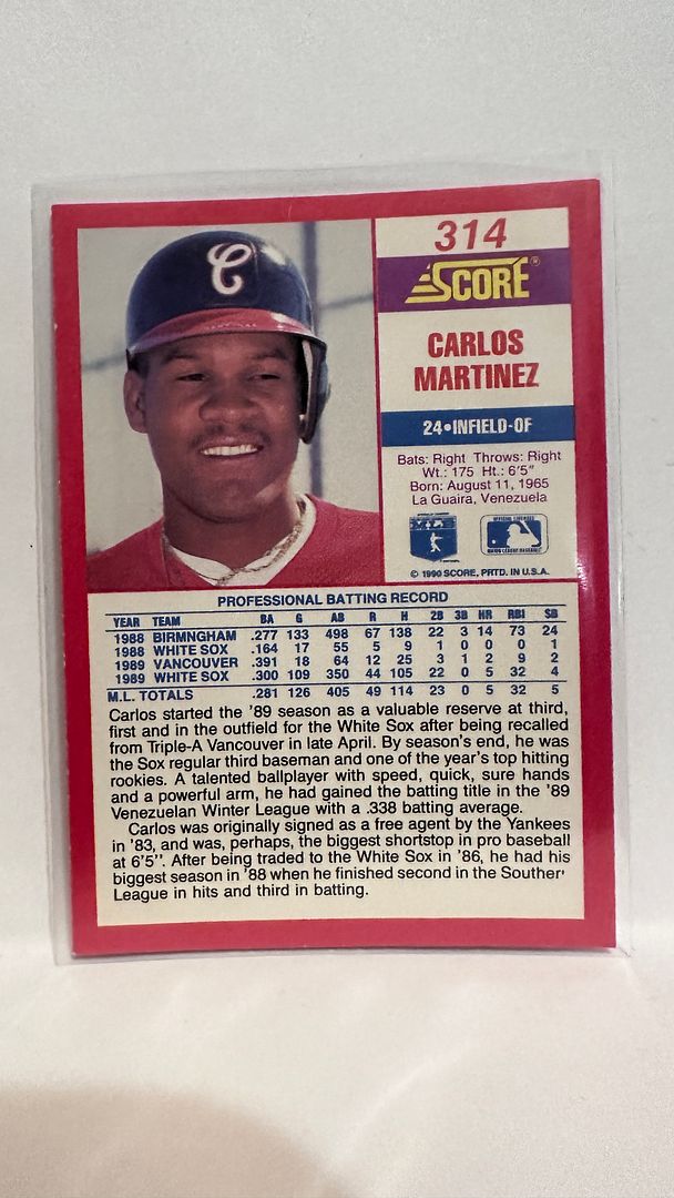 #314 Carlos Martinez Chicago White Sox 1990 Score Baseball Card