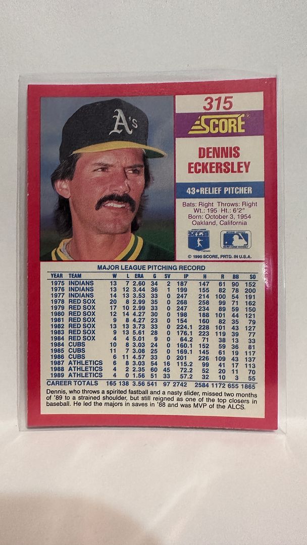 #315 Dennis Eckersley Oakland Athletics 1990 Score Baseball Card