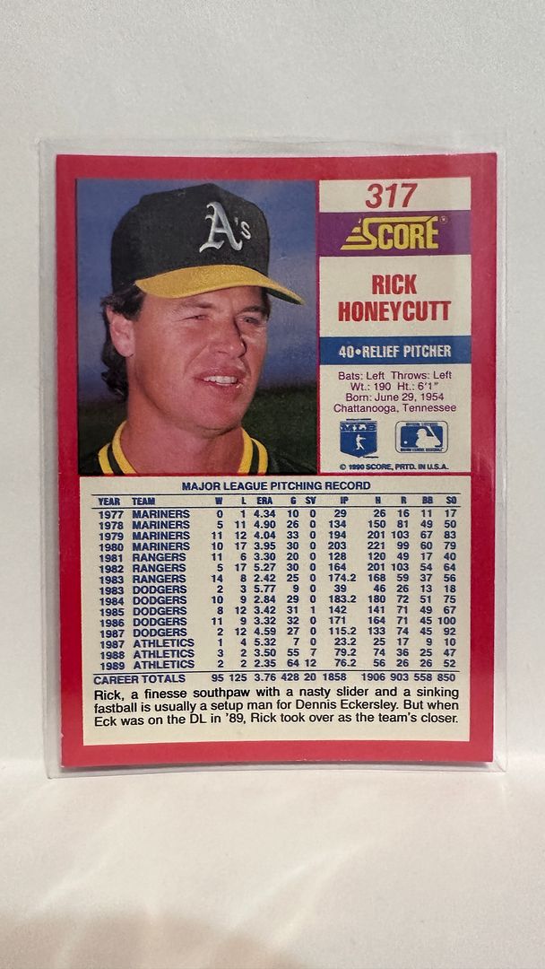 #317 Rick Honeycutt Oakland Athletics 1990 Score Baseball Card