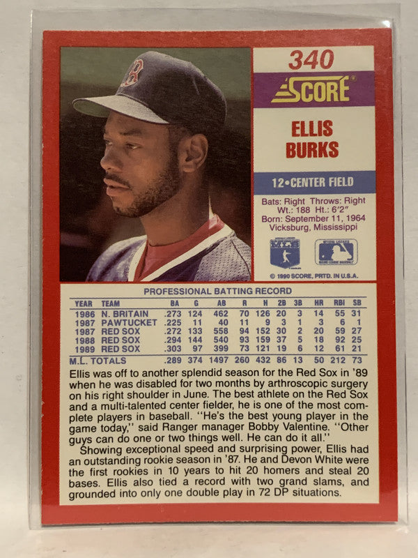 #340 Ellis Burks Boston Red Sox 1990 Score Baseball Card