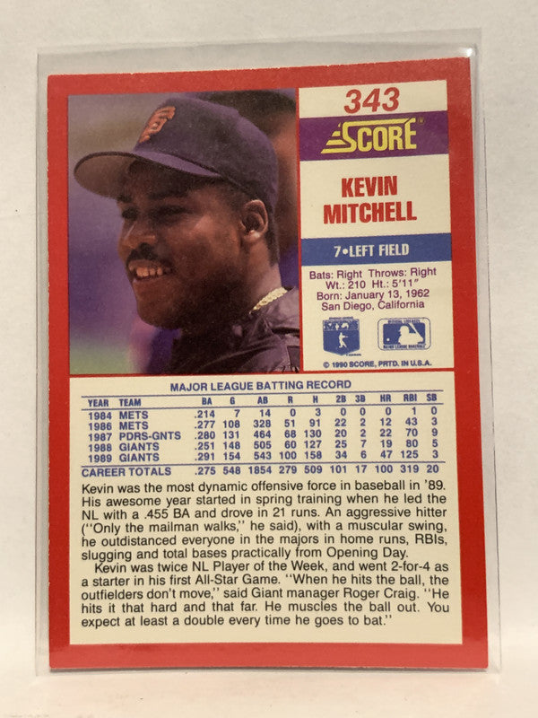 #343 Kevin Mitchell San Francisco Giants 1990 Score Baseball Card