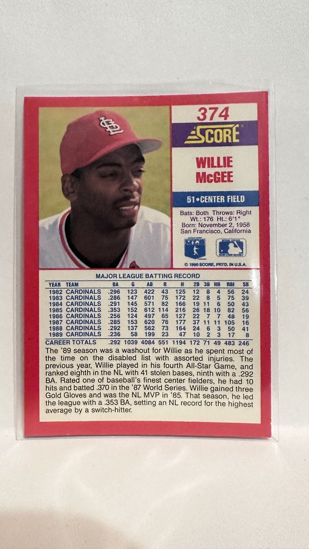 #374 Willie McGee St Louis Cardinals 1990 Score Baseball Card