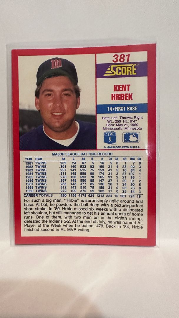 #381 Kent Hrbek Minnesota Twins 1990 Score Baseball Card
