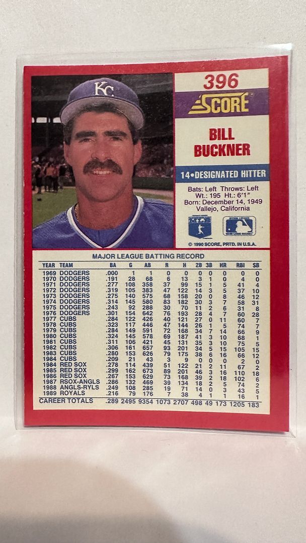 #396 Bill Buckner Kansas City Royals 1990 Score Baseball Card