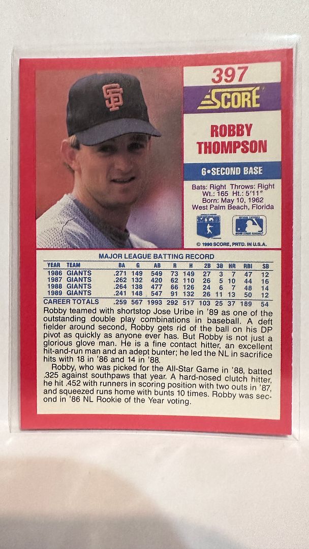 #397 Robby Thompson San Francisco Giants 1990 Score Baseball Card