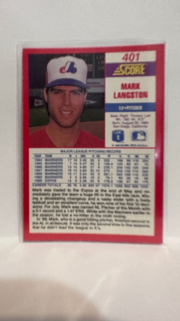 #401 Mark Langston Montreal Expos 1990 Score Baseball Card
