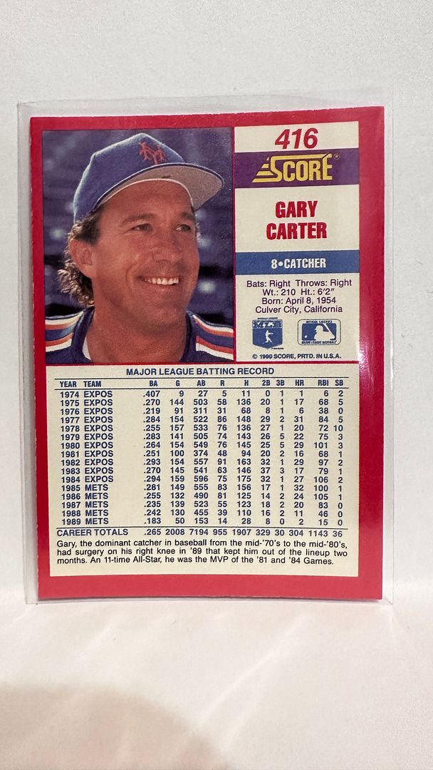 #416 Gary Carter New York Mets 1990 Score Baseball Card