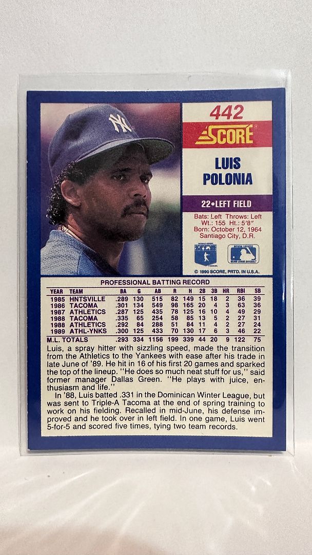 #442 Luis Polonia New York Yankees 1990 Score Baseball Card