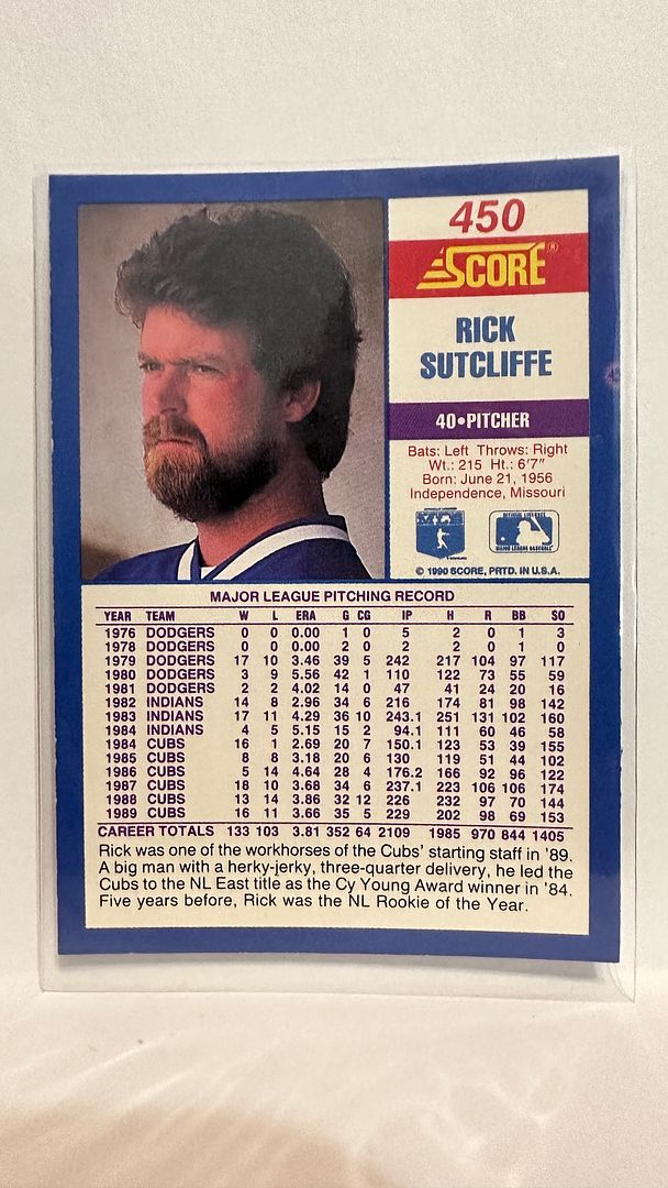 #450 Rick Sutcliffe Chicago Cubs 1990 Score Baseball Card