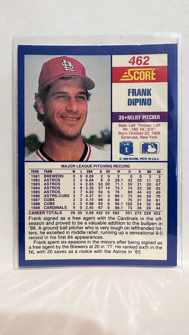 #462 Frank Dipino St Louis Cardinals 1990 Score Baseball Card