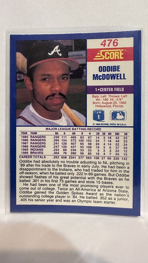 #476 Oddibe McDowell Oakland Athletics 1990 Score Baseball Card